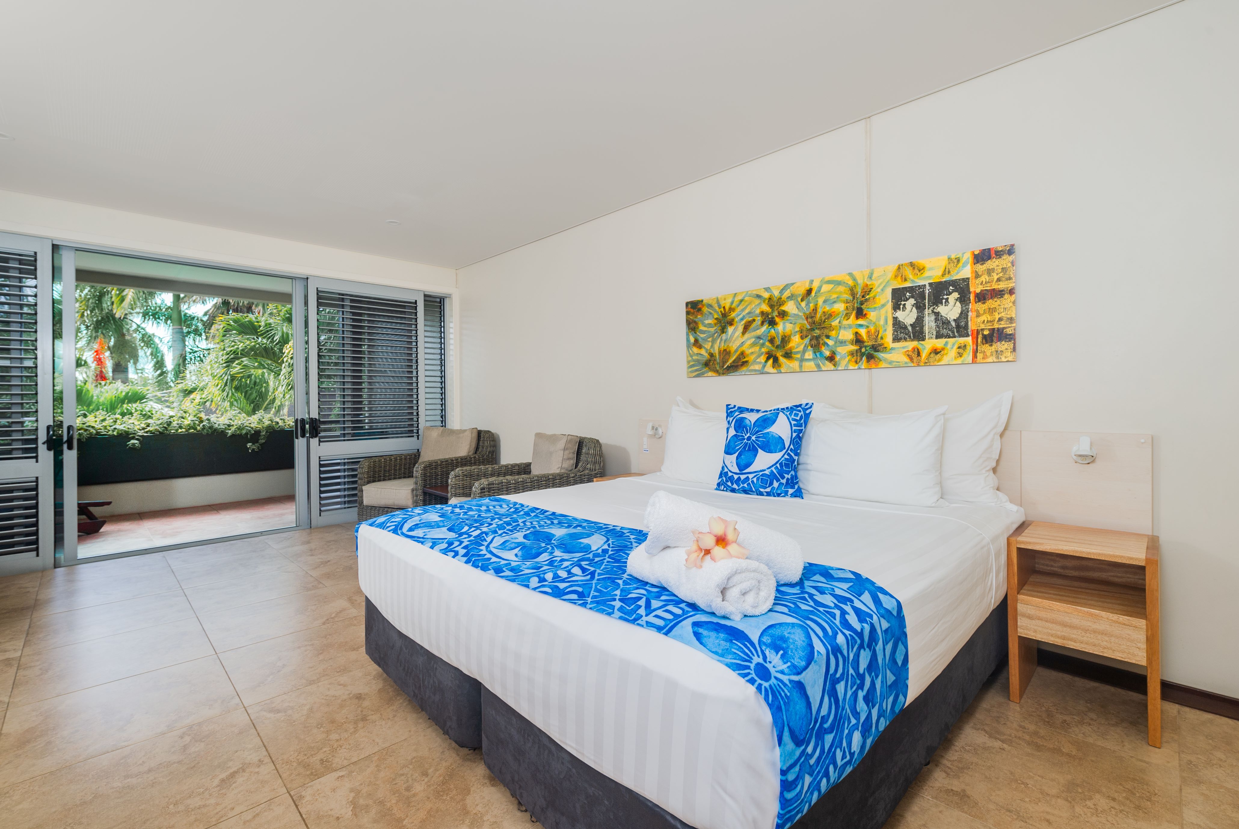 This studio offers a private, furnished balcony or patio and overlooks the pool and grounds.